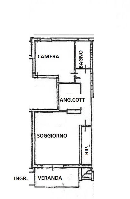 L'appartamento al piano terra, con soggiorno e cucina a vista, camera matrimoniale con armadio a muro, bagno finestrato con doccia, ripostiglio interno, posto auto scoperto.
